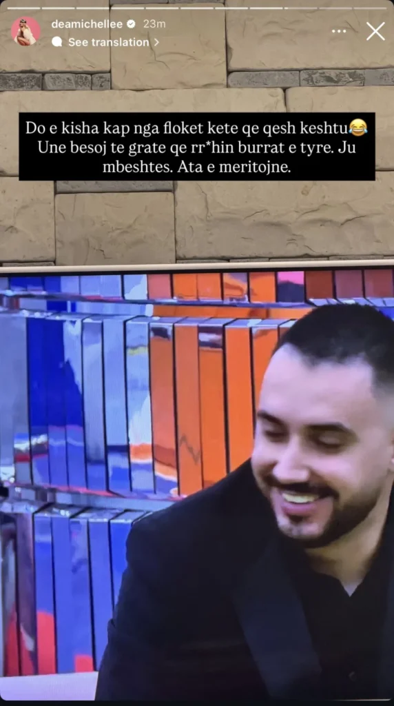 Për këtë situatë, ka reaguar edhe Dea Michelle, ish banore e BBV, e cila ka shprehur mbështetje për gratë që rrahin burrat.